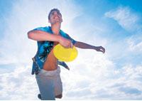 Яна осторожно взяла тарелку, посмотрела на нее со всех сторон и кинула. Тарелка полетела слишком низко, но Сергей потянулся за ней и, упав на бок, поймал у самой земли.