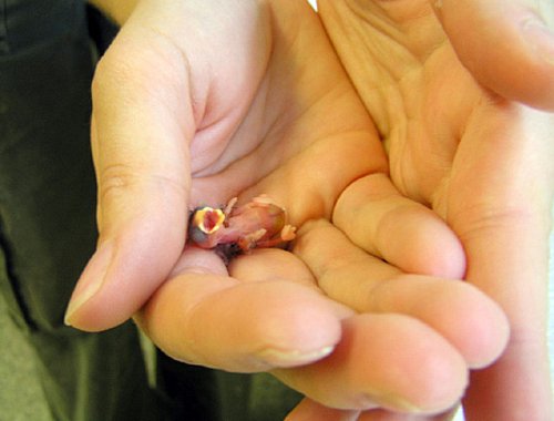 Птенчик выпал из гнезда, подниму его, малютку…