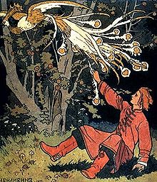И вот в полуночный час, он ясно увидел, как прилетела красивая птица на его поле. Она вся горела великим сиянием и была так прекрасна, что Иван рот открыл. Он чуть не прозевал ее от восхищения. Когда птица стала взлетать, он поспешил схватить ее за хвост.