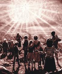 С торжествующими криками, издевками и проклятиями озлобленные толпы готовы напасть на свою добычу, но вот густой мрак, темнее самой темной ночи, покрывает землю. Затем на небе появляется сияющая славой Божьего престола радуга: кажется, что она окружает собой каждую группу молящихся. Свирепые толпы цепенеют от ужаса. Смолкают насмешливые возгласы. Люди забыли о том, что их так разъярило. С ужасным предчувствием надвигающейся опасности они смотрят на символ Божьего завета и желают укрыться от этого всепроникающего сияния.